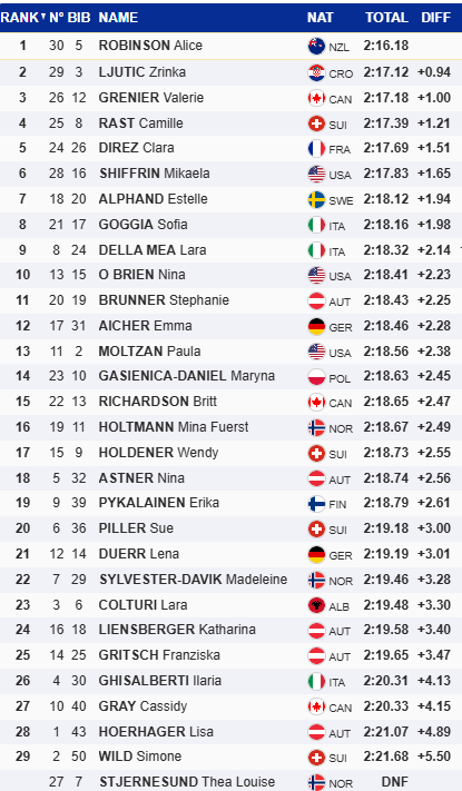 Elle a été devancée par Alice Robinson de Nouvelle-Zélande et la Croate Zrinka Ljutic.