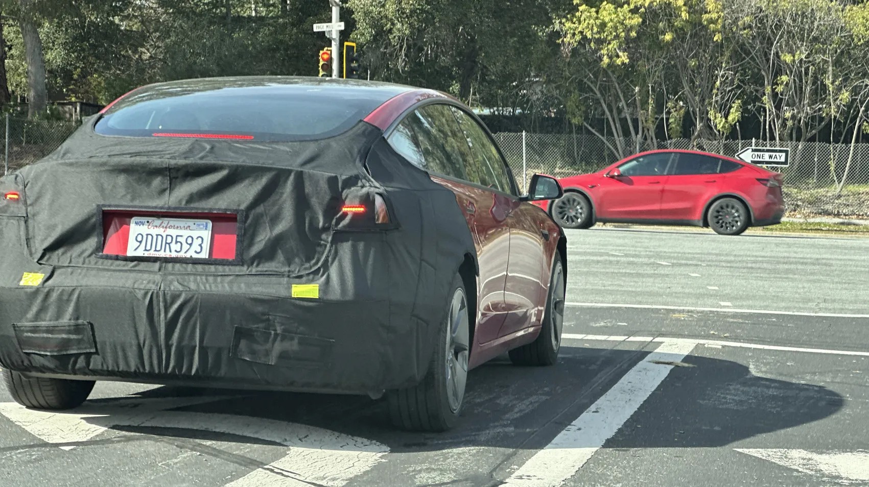 • La Tesla Model 3 camouflée semble être le modèle qui sera mis à jour dans le cadre du projet Highland.